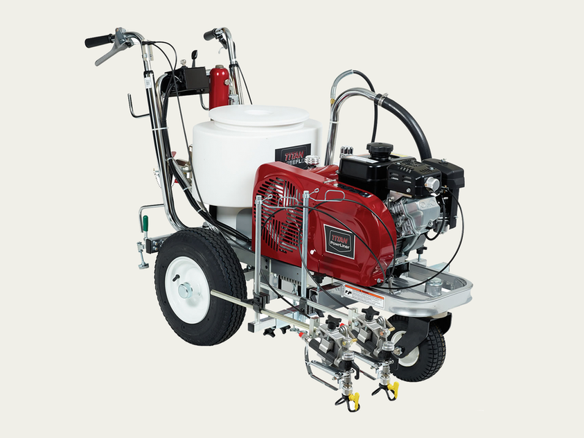 definición de línea, aplica la pintura a 3000 PSI, doble pistola, pinta un solo color y puede alcanzar hasta 40 cm con las dos pistolas, depósito de 45 litros de pintura o puede succionar directamente de la cubeta de 19 litros. Ideal para mantenimiento urbano, trabajos de mantenimiento en carreteras o aeropuertos, con seguro para línea recta.